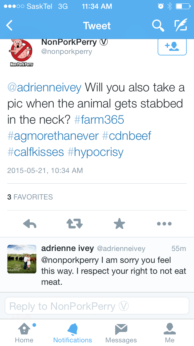 So for all you eat meat-eaters out there – those of you that are watching on Twitter or Facebook or reading blogs like this one: thank you for every Like, Favorite, Share, or Re-Tweet. Thank you for every honest question you have asked of farmers like me. Thank you for wanting to know more. My engagement with you far out weighs days like today. Your support balances the hate. Some days we need it.